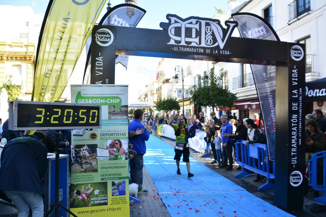 Última Carrera de la temporada en Sanlucar de Barrameda . La Ultramaraton de la Vida… Una prueba de 50 kms, que busca «Unir la cultura de la Donación de órganos y tejidos a la salud a través del deporte, como vía de expresión y difusión de los valores solidarios de la sociedad». Por todo esto, hace que la misma sea especial con respecto a la mayoría de las pruebas en las que he participado. Llego bien de forma, a mi nivel obviamente, pero me encuentro rápido y con ganas de salir con los de delante hasta que el cuerpo aguantase.La salida ya es diferente al resto. Nos recoge una barcaza en el Bajo de Guía y nos lleva hasta un punto que no conocemos con antelación. Si algo hace peculiar a esta prueba es, que hasta el mismo día de la carrera, no nos enteramos del recorrido de la misma. Si ya la temperatura era bajita a esa hora, la sensación térmica era aún más baja. Qué frío más malo!!!!.