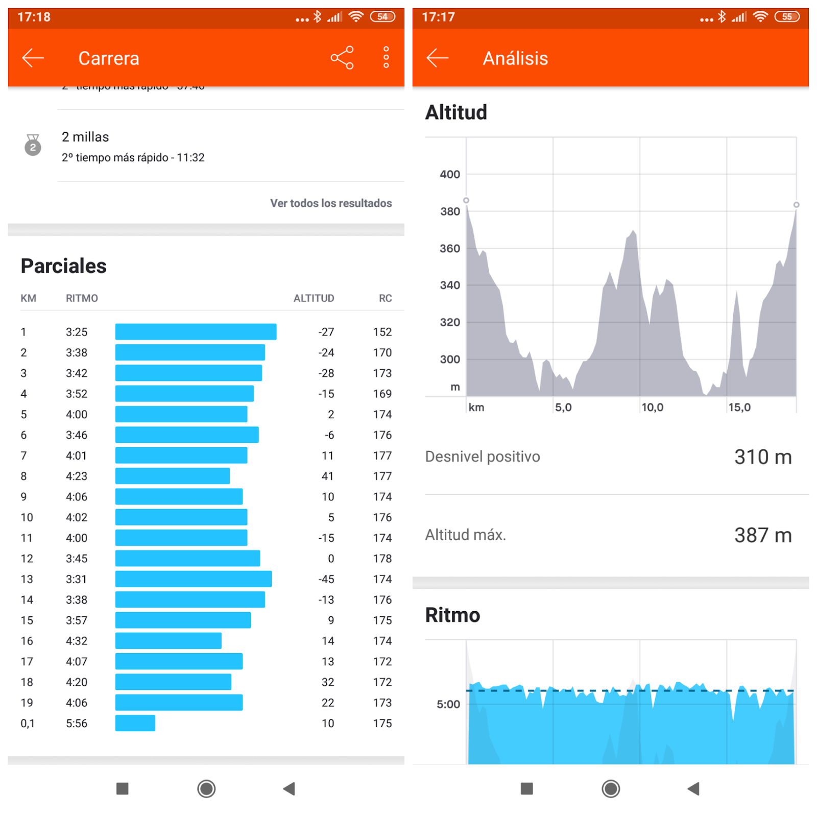 Paro el crono en 1hr15’50» , o lo que es lo mismo, a 3’57» el km, que me deja más que satisfecho!!!!.